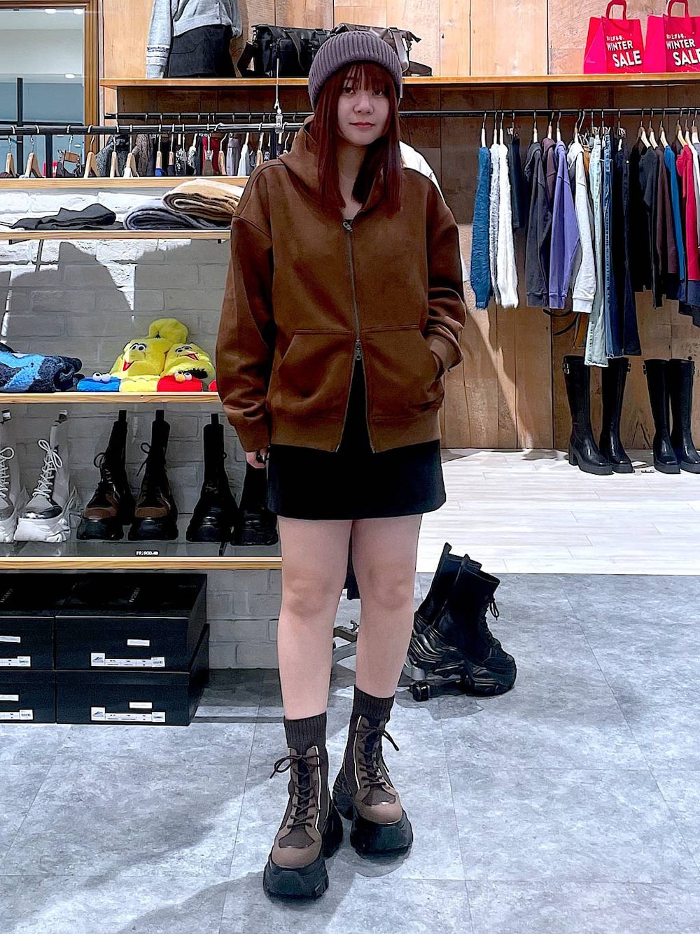 ご覧いただきありがとうございます☺︎ ブラウンコーデ🤎 【トップス】 スエード素材でラフにもキレイめにも着て頂けるパーカーです! 風を通しにくいので温かい! 後ろが長めの着丈で前はスッキリと見せてくれます! 被ってない時のフードシルエットも立体的でキレイです! 【ボトムス】 こちらもスエード素材のミニスカです! ウエスト後ろがゴムになっているのでストレスフリーではいて頂けます!☺︎ 台形シルエットで太ももカバーしてくれるので脚を細く見せてくれます! 厚底と合わせるとより脚長効果抜群です!☺︎