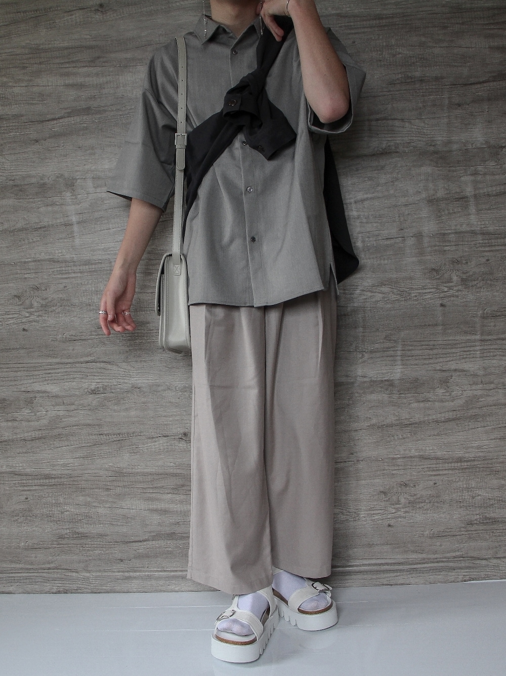 けいのシャツ/ブラウス「【CLEL】TR Loose Half Sleeve Regular Collar Shirt / TR ルーズ半袖レギュラーカラーシャツ【セットアップ対応】」を使ったコーディネート