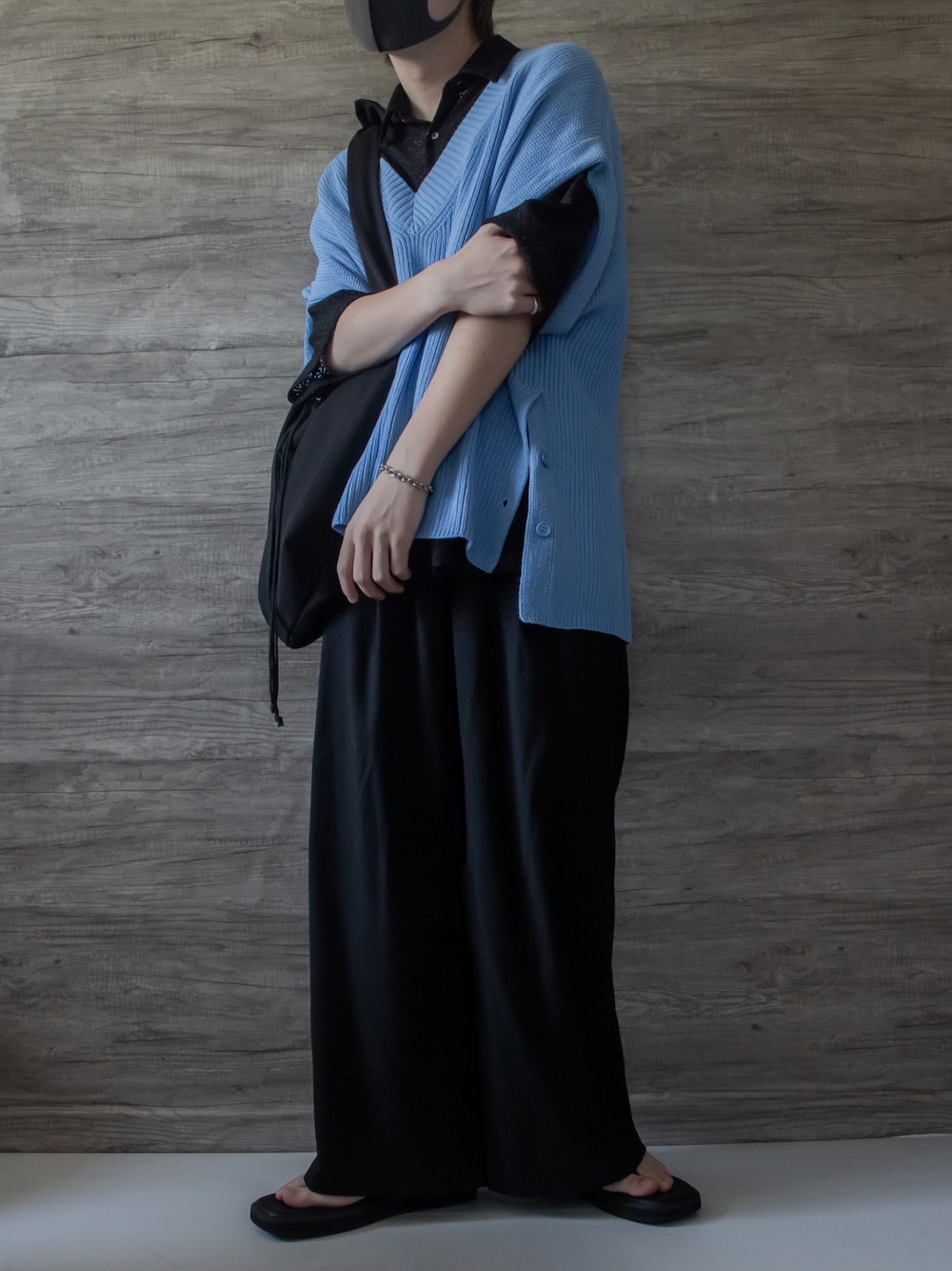 けいのベスト「ROOPTOKYO×Kei ルーズシルエット ロールアップVネックベスト」を使ったコーディネート