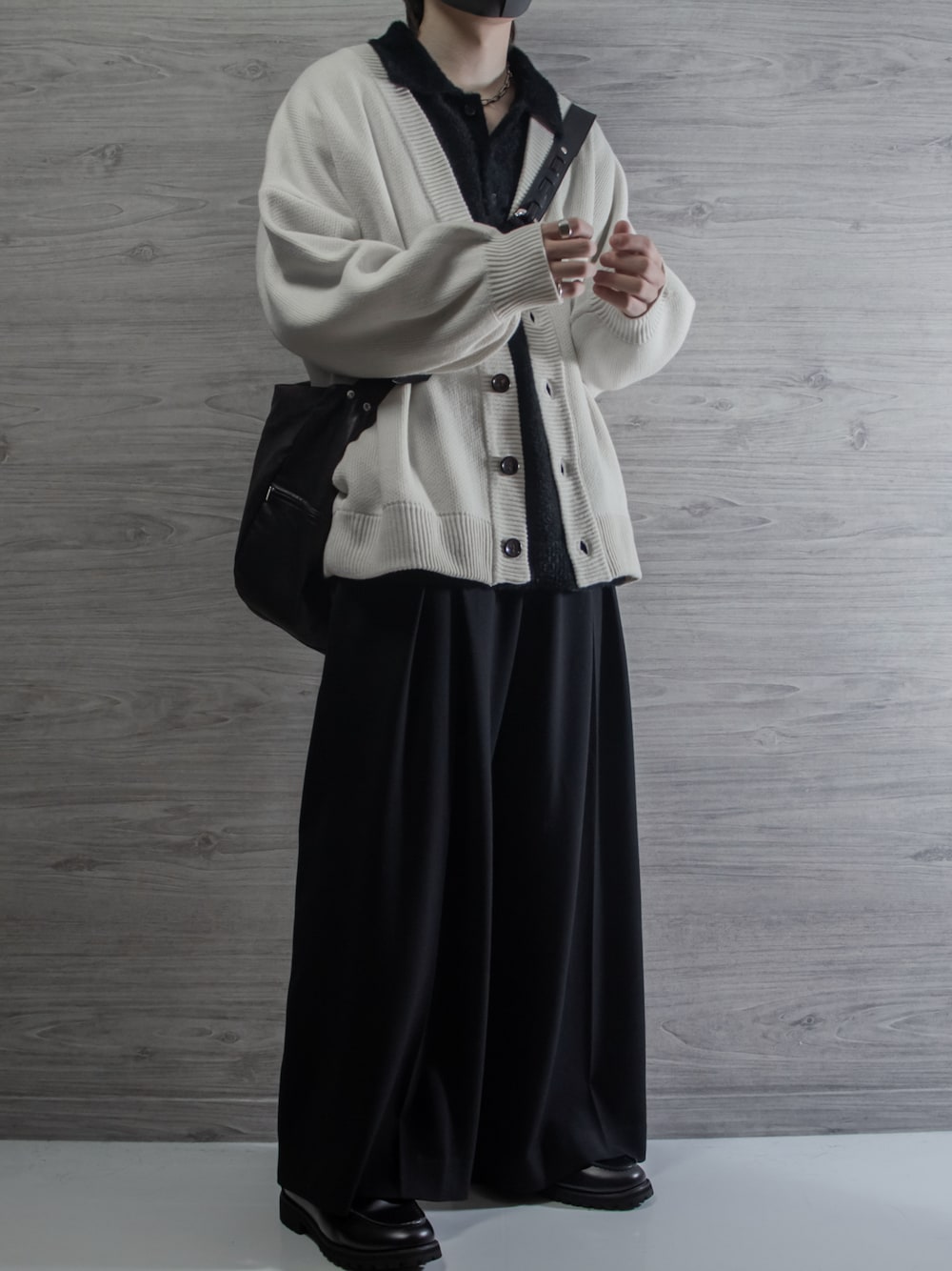 VELNUS 2nd Collection ↪︎10/3(木) PM12:00~ ZOZOTOWN RELEASE!! White × Black. カーディガンとスラックスを使ったキレイめカジュアルコーデ。 インナーをポロシャツにすることで差別化できる新鮮なレイヤードスタイルに◎ Instagram:@kei__wear .