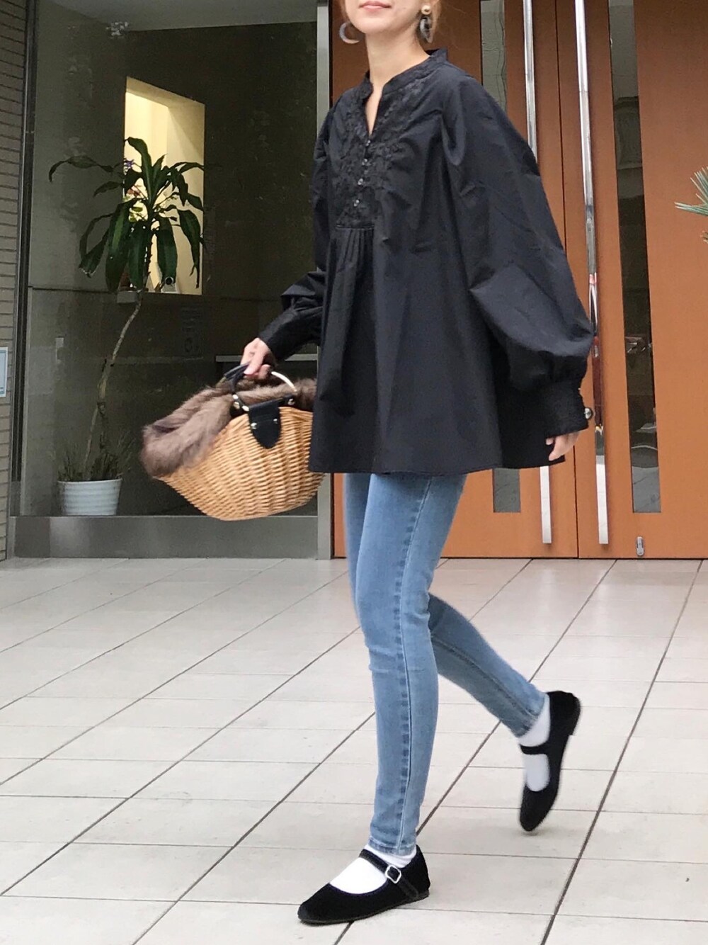 スキニーがパツパツパンツでごめんなさい🤣 待ちに待った コースタイルさんの新作ブラウス✨✨ やばい❤️とにかく全てがやばいです🥰🙌🏻❤️❤️ 写真だとラインがあまり綺麗に出なかったので 是非ご自身の目で確かめて頂きたい逸品です🥰❤️❤️
