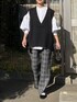 KRのベスト「アクリルウール Vネックニットベスト」を使ったコーディネート