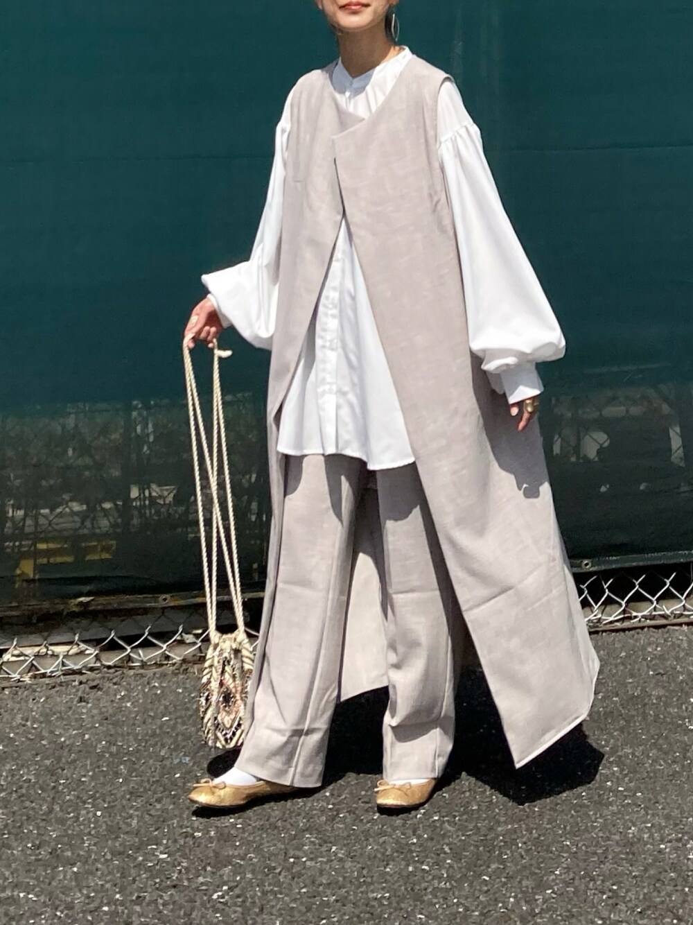 KRのシャツ/ブラウス「ボリュームスリーブバンドカラーブラウス」を使ったコーディネート
