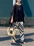 こんにちは おニューのおパンツにお気に入りのブラウスでモノトゥーンコーデです🖤🤍🖤 珍しい柄のおパンツはKBFさん きれいめなのに ウエスト全部ゴムでめっちゃらくちんです😇❤️ かごバッグは間もなく発売予定です😇🧺✨