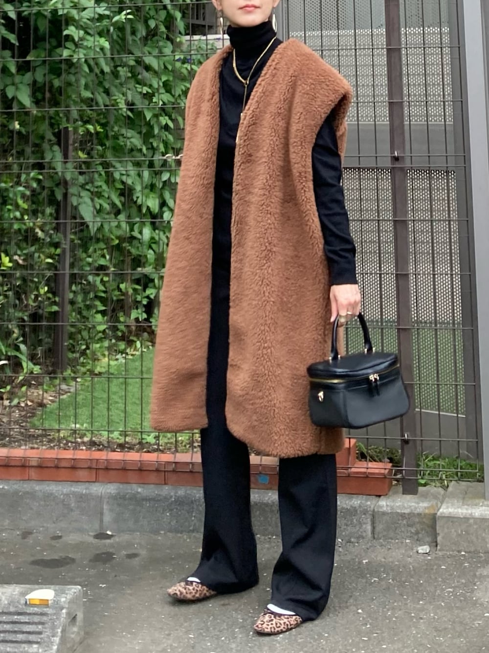 KRのベスト「ボアロングベスト」を使ったコーディネート