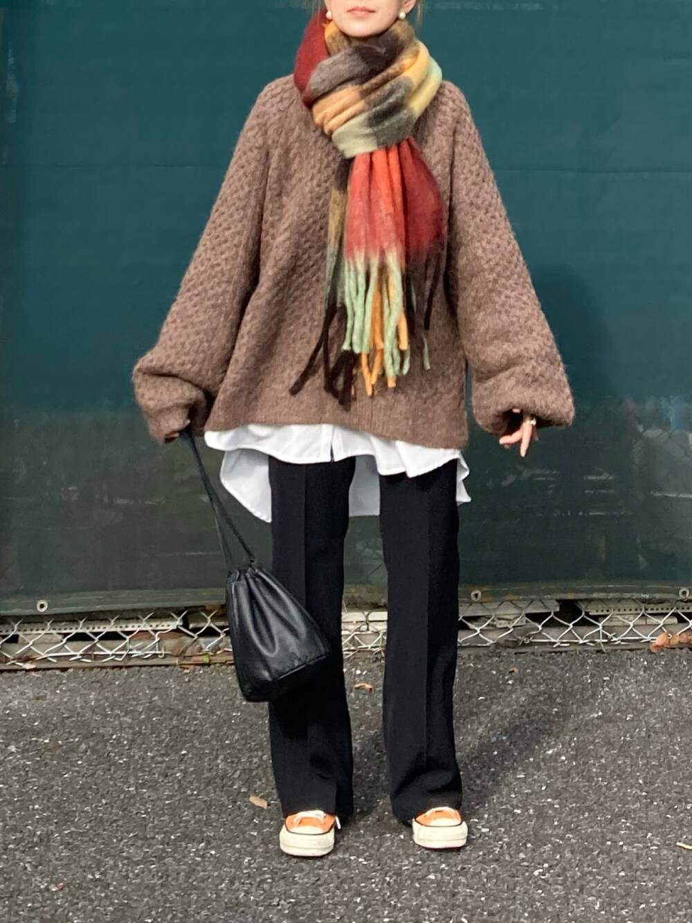 KRのマフラー「チェック柄ボリュームマフラー」を使ったコーディネート
