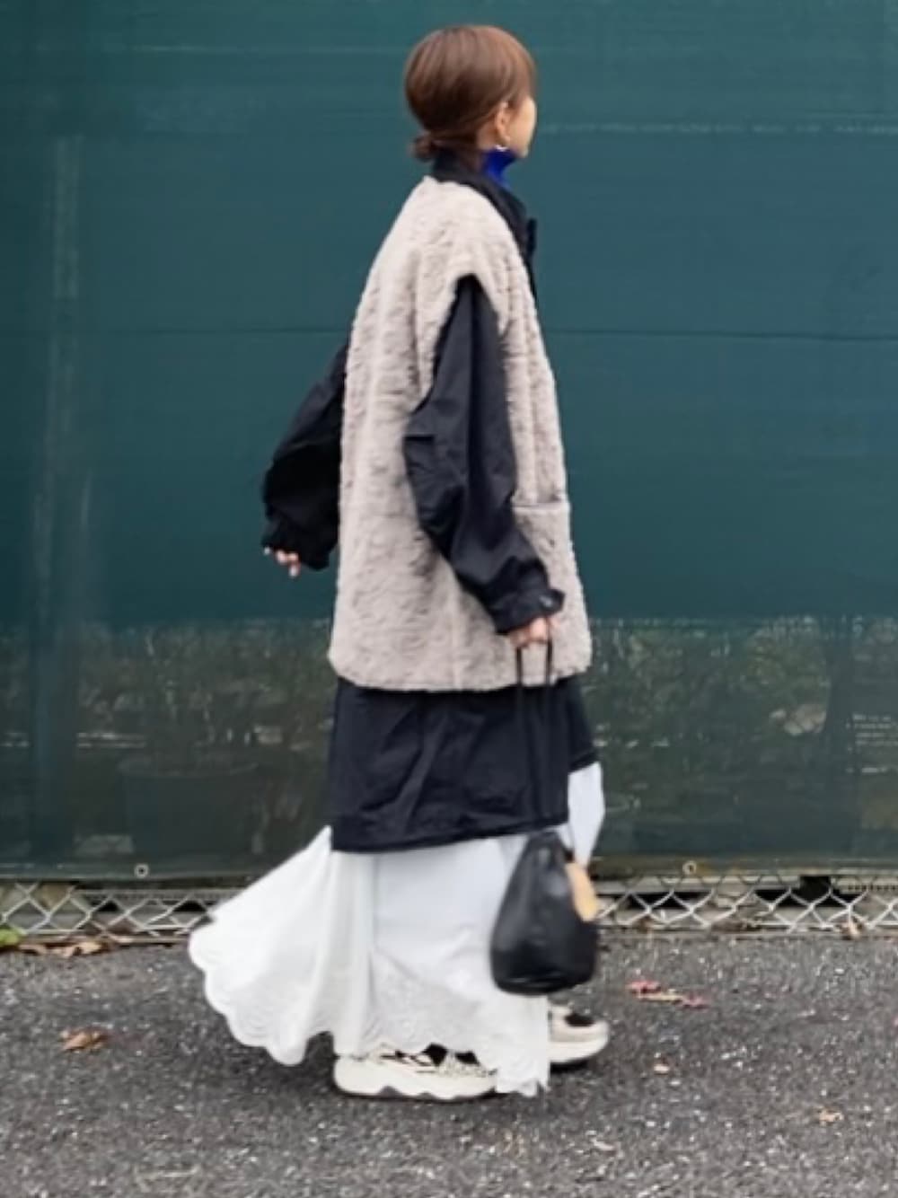 KRのモッズコート「マルチWAYボアベスト付きモッズコート/ビッグシルエットミリタリーコート/ミリタリーロングコート/ファーベスト」を使ったコーディネート
