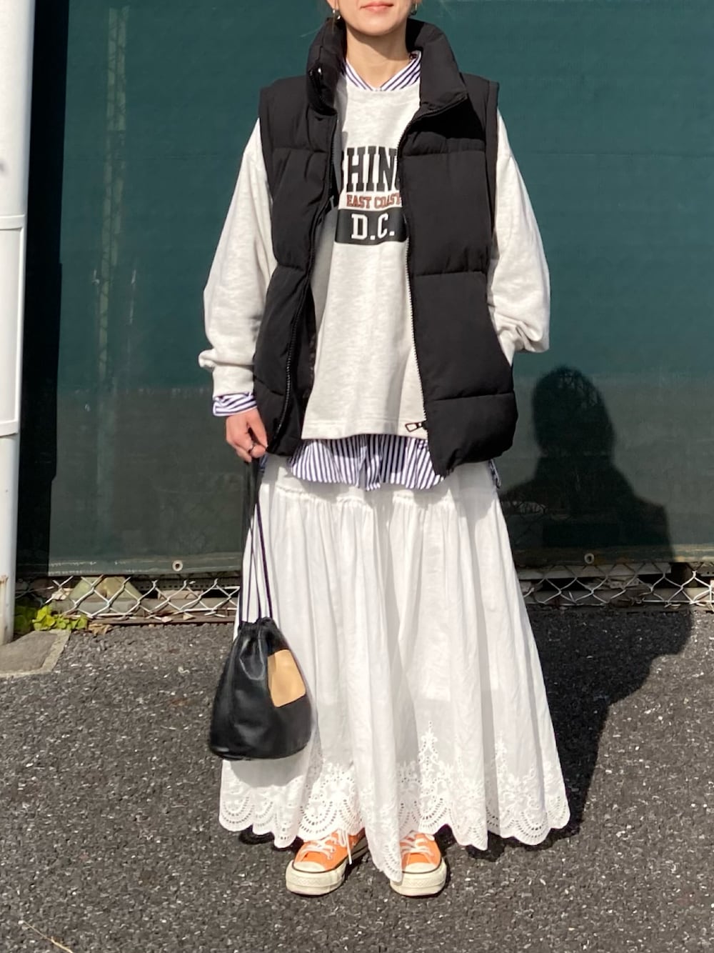 KRのダウンベスト「ファイバーダウンオーバーベスト」を使ったコーディネート