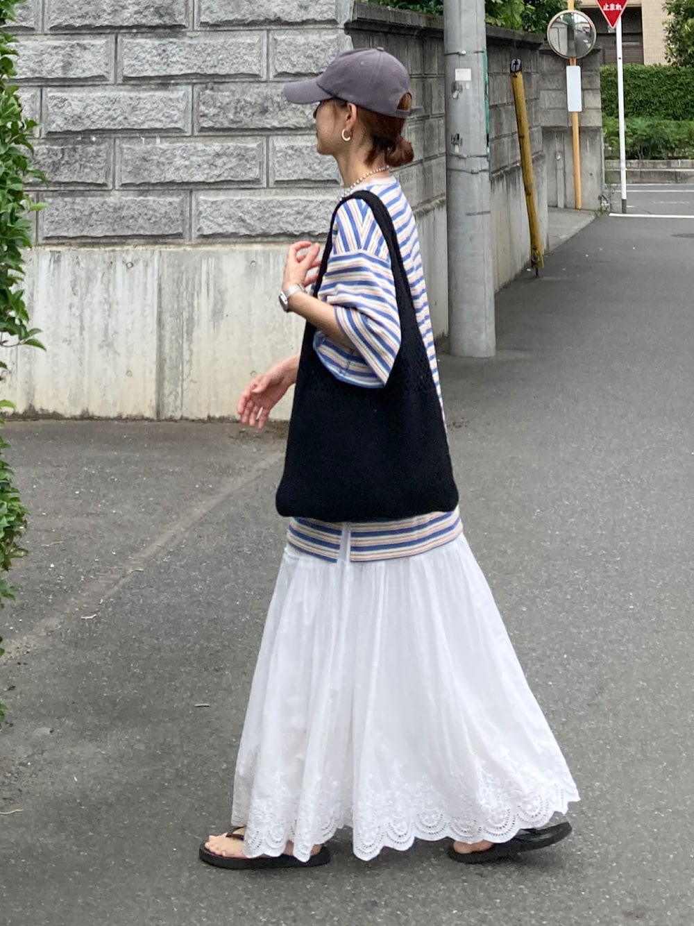 ゆるコーデ ビッグシルエットのTシャツは ワッフル生地にカラフルなボーダーが めちゃくちゃ可愛いです🥰🫶🏻🌈