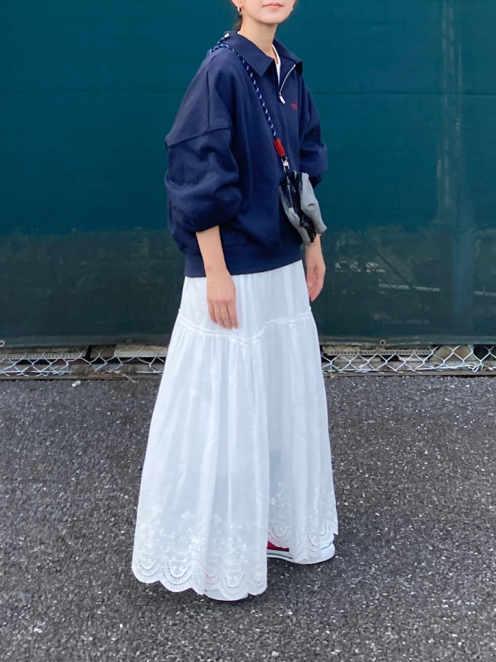 KRのスウェット「オーバーサイズ ワンポイント刺繍 ハーフジップスウェット」を使ったコーディネート
