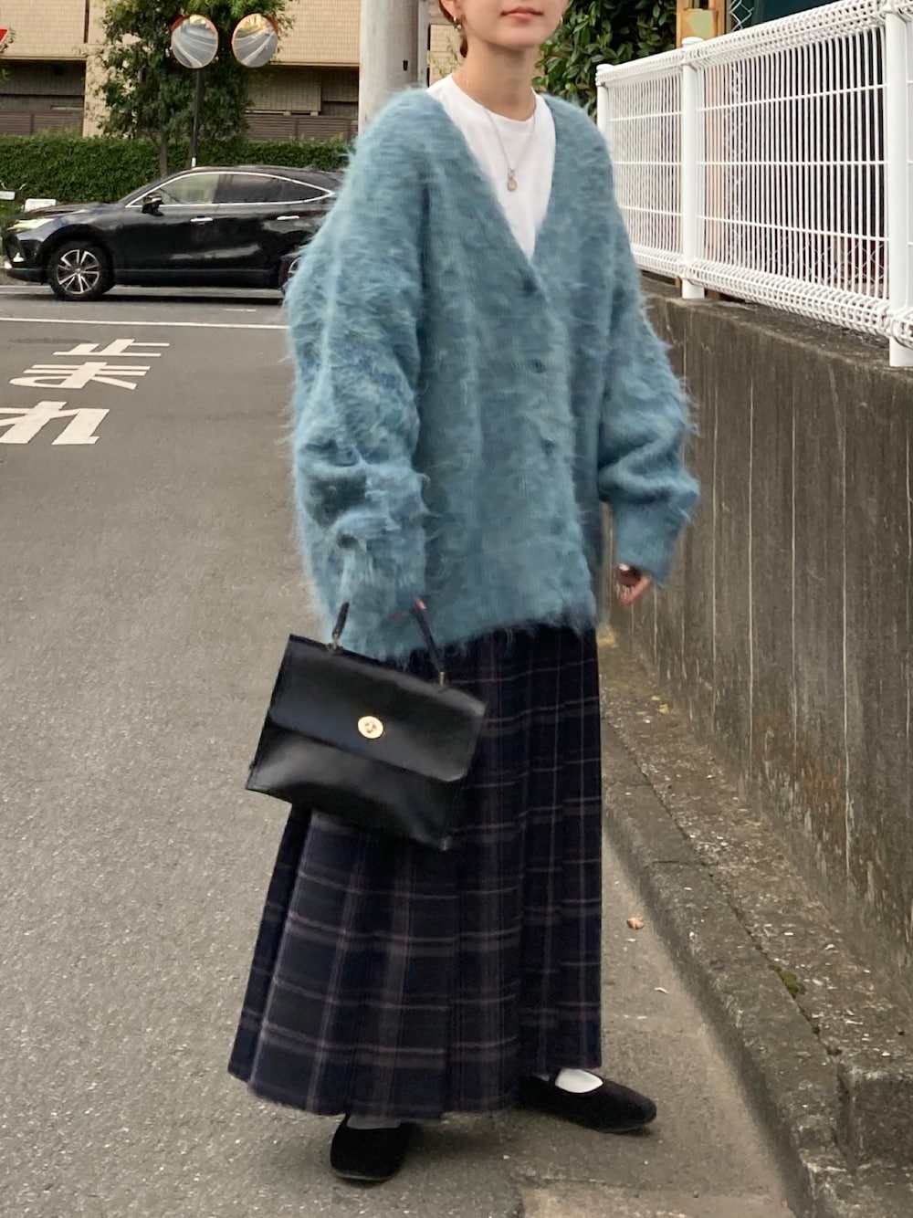 forksy.さんコーデ ふわモコのカーディガンは 9/19(火)発売予定の新作です✨ ビッグシルエットとボリューム袖 なんとも言えないくすみカラーが めっちゃくちゃ可愛いです🥰💙💙 #PR