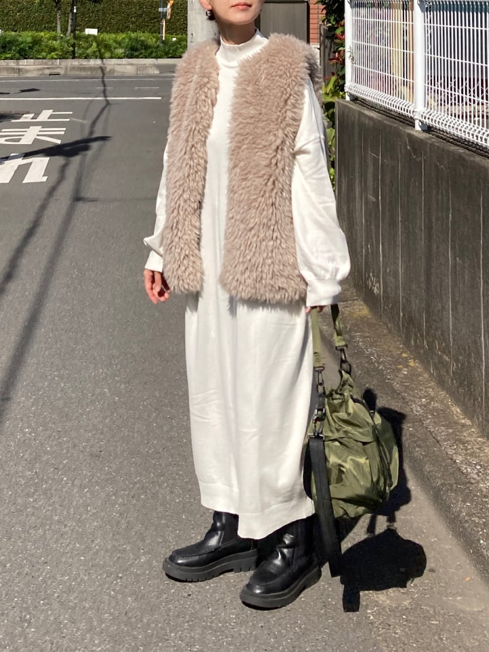 KRのワンピース「ハイネックニットロングワンピース」を使ったコーディネート