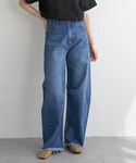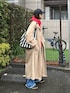 KRのかごバッグ「【2サイズ展開】巾着ポーチ付♪ワイドストライプメッシュトートバッグ」を使ったコーディネート
