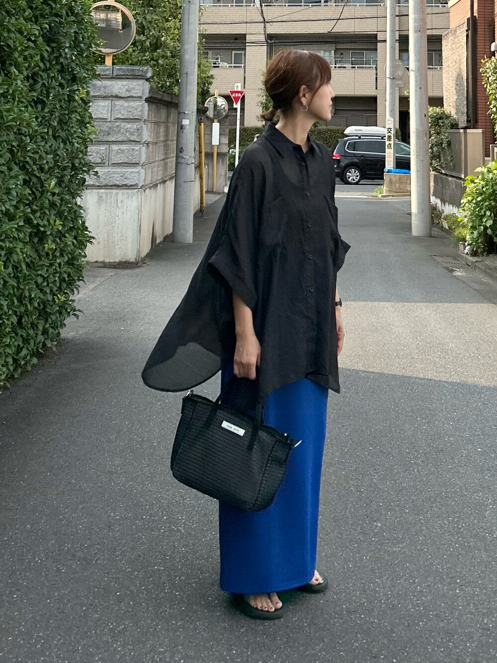 このシャツめっちゃ涼しくて可愛い🥰 ずっと履いてるお気に入りのスカートはノッチさんです💙 最近入荷したパリジェンヌ風バッグは インスタにリンク貼りますね🔗🇫🇷✨ #PR