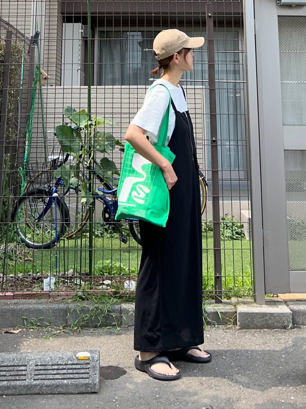 只今FFEINさんで4000円以上ご購入の方に 可愛いトートバッグプレゼント中だそうです💚🥰 ジャンパースカートとTシャツはジーラさんです🤍🖤 #PR