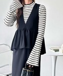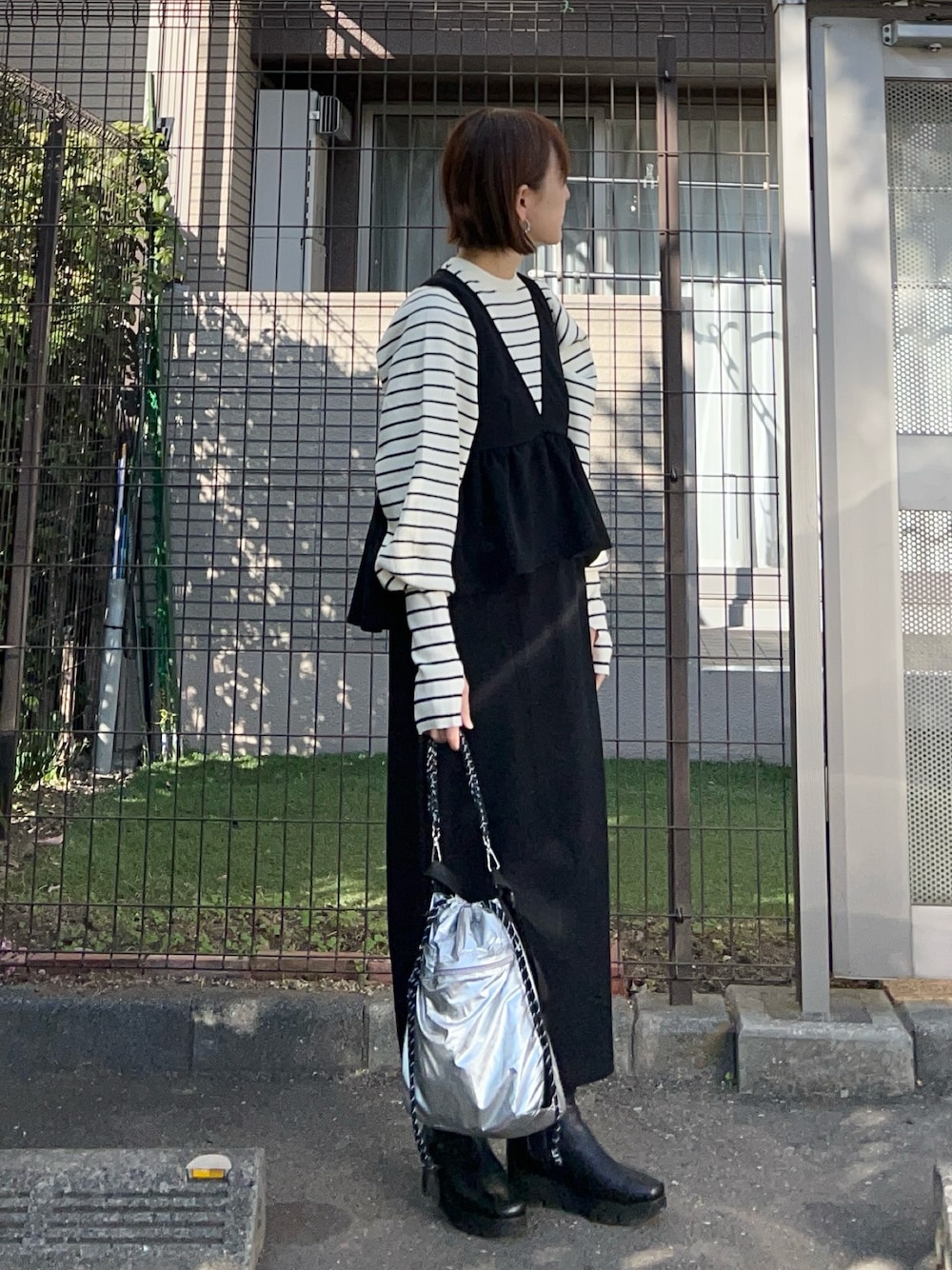 KRのジャンパースカート「楽ちん!ペプラムジャンパースカート」を使ったコーディネート