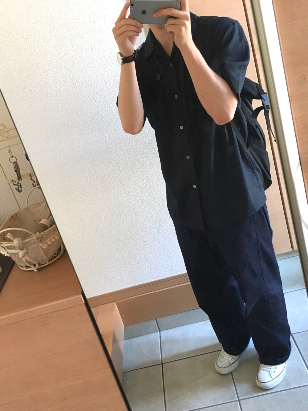 オープンカラーシャツとワイドパンツ。 モノトーンっぽく。ネイビーばっかりだったのでコンバースの白で色を増やしてみました。 オープンカラーシャツの生地も夏っぽくてとても好きです。 暑かったり涼しかったりで気温もよく分からなくなってきますがみなさん体調崩さないようにお気をつけて...!