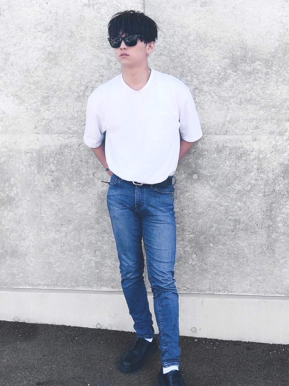 少し前の写真だけど、 夏はデニムに白Tが安定のファッション! simple is best! 革靴で綺麗めになるようにしました Instagramのフォローもお願いします!