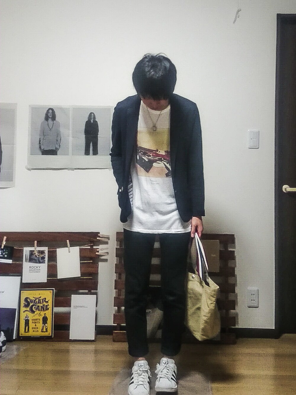 おはよーございます☀🙋❗ 昨日、インスタに挙げたコーデです♪ヽ(´▽`)/ journal standardのテーラードジャケットにTシャツを合わせてみました!! この前買ったHollywood ranch marketのネックレスもヘビロテ中です(*´ω`*) パンツはSULLIVANの黒スキニー🙆 いつもよりきれいめにしてみましたが、どうでしょう?!笑 save、コメント、followなどしていただけるとめちゃめちゃうれしいです!!よろしくです!!🙋