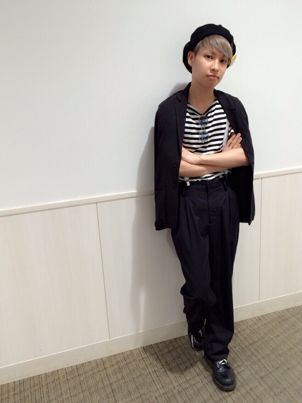 NUMBER (N)INEのボーダーTEEと 新作のカットテーラード、ワイドスラックスで、ゆったりシルエットのモノトーンコーデ! やっぱり、モノトーンはかっこいい!
