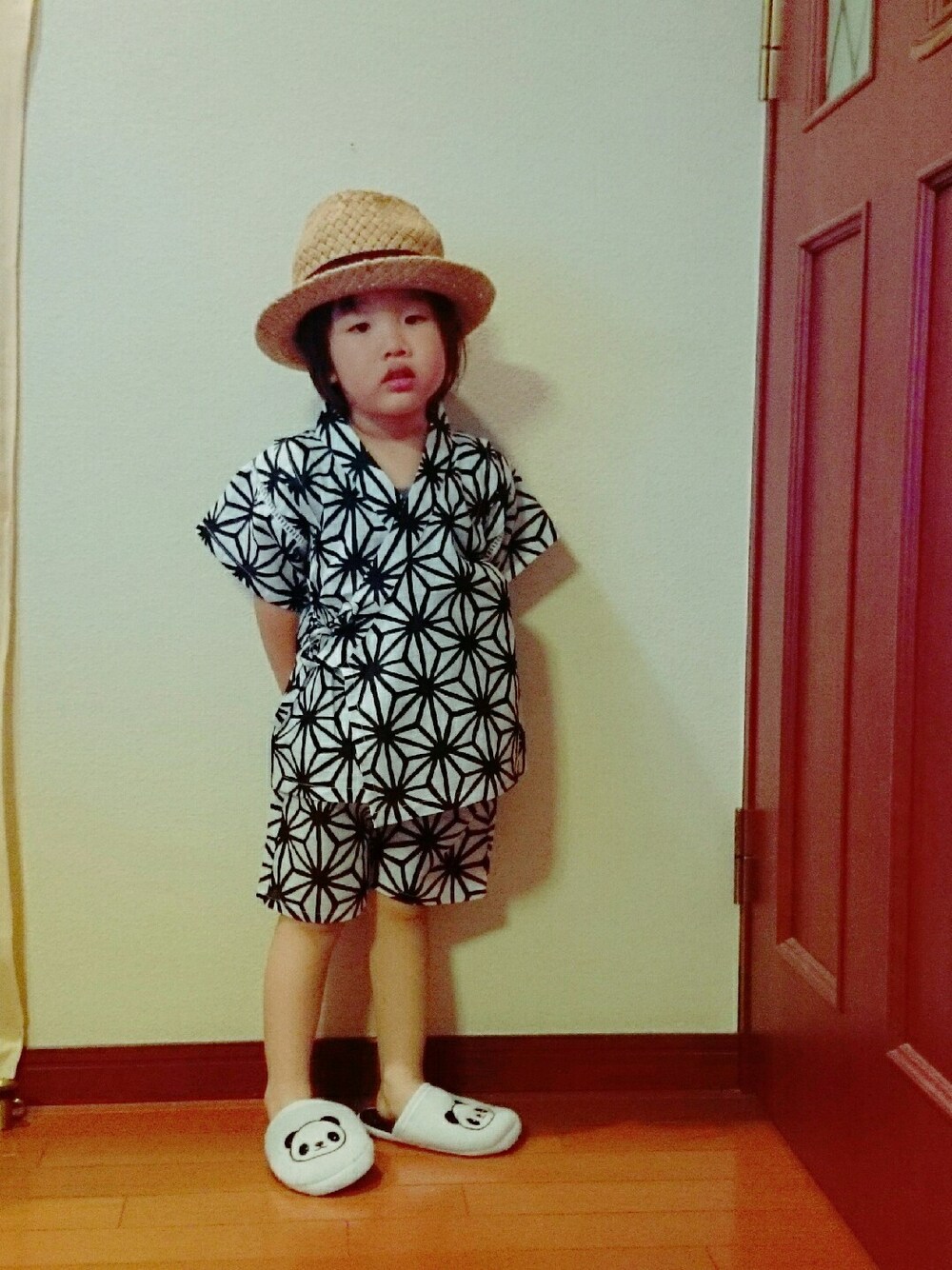 今日は朝から暑いから ちょっと前の『お祭りコーデ🎵』 載せちゃいますぅ🎶 甚平を着て 縁日に行ってきたよ🍧 次の日は 近所でこども御輿🎵 息子くんは まだ小さいから 山車を引いて 暑い中☀ 2時間ぐらい歩いて 良く頑張りましたぁ🙆 小窓は大好きなHanyaちゃんと♥