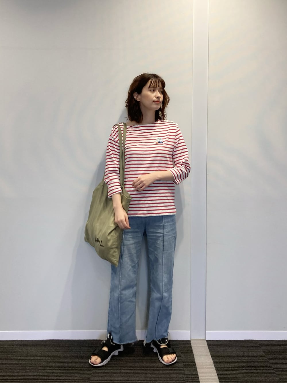 ボーダーとデニムの合わせ大好きなので涼しくなってようやく着れるこのトップス! ミッフィーかわいい