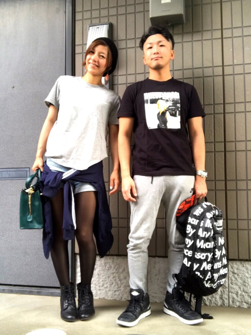 上下逆でグレーのナイキでコーディネート(╹◡╹) 全く同じペアルックもいいけど、組み合わせを逆にして、同じブランドを合わせるのもなかなか良いもんです! ペアルックに抵抗ある方は是非!