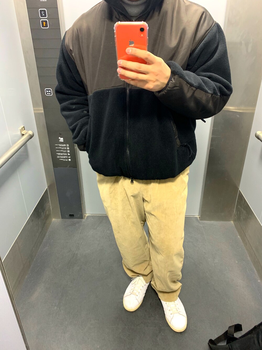 フリース:ECWACS スウェット:Lui’s パンツ:USED シューズ:adidas シンプルなフリースコーデ! ラフで楽だから好きだなー