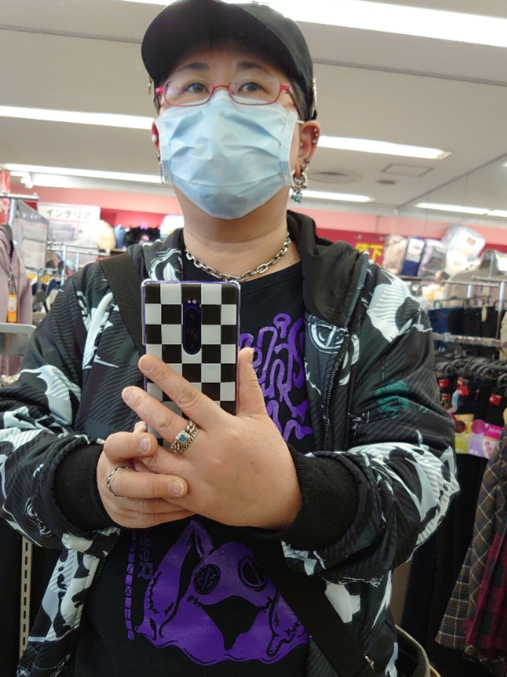 近所のしまむらにて。 うち、大きな鏡ないから写真撮る時ほとんどここ。 今日は全身NieRコーデ。(下半身見えないけど)