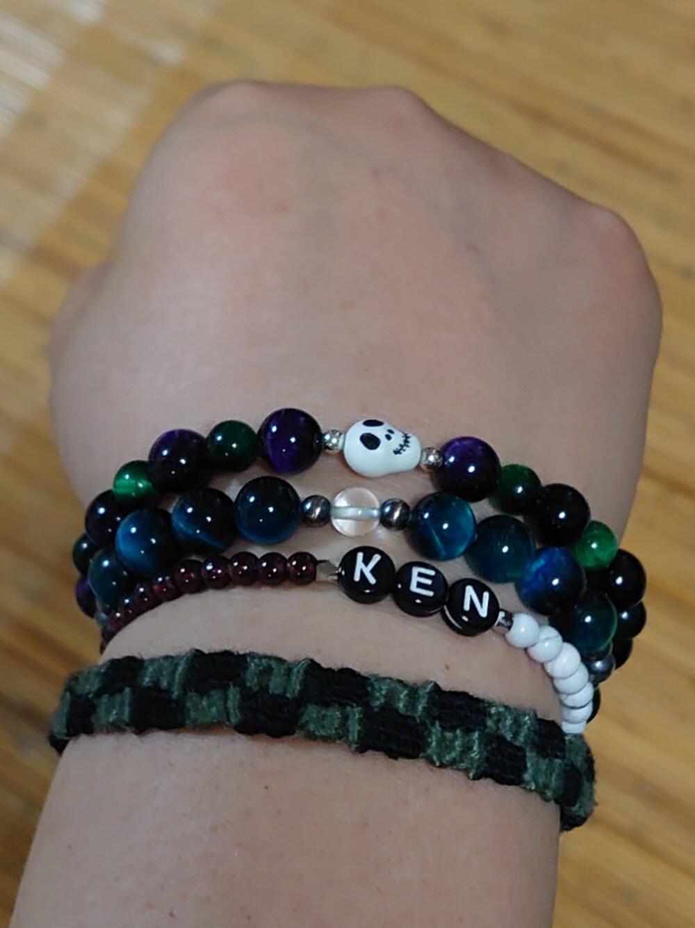パープルとグリーンのタイガーアイの『ゾンビブレス🧟♂️バブル』です。前に購入したドラゴンブレス、『Serene』と重ね付けしました(*^^*)