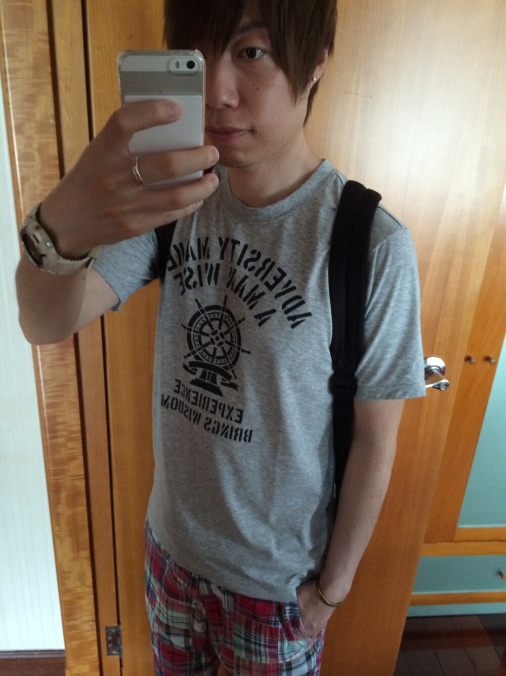 グレー系のTシャツ/カットソー、その他のその他パンツを着用したメンズの春コーディネートの1枚目の写真