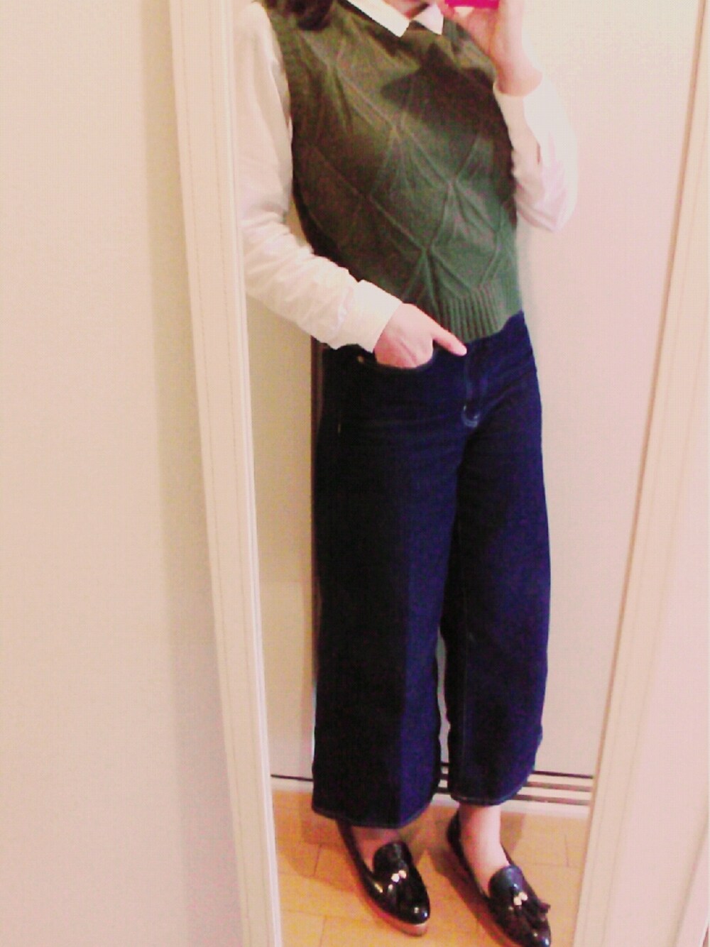 今日はちょっと風が強いかな。 正直、ちょっと寒いけど… W closet のカーキニットベスト着たいから我慢する(笑)