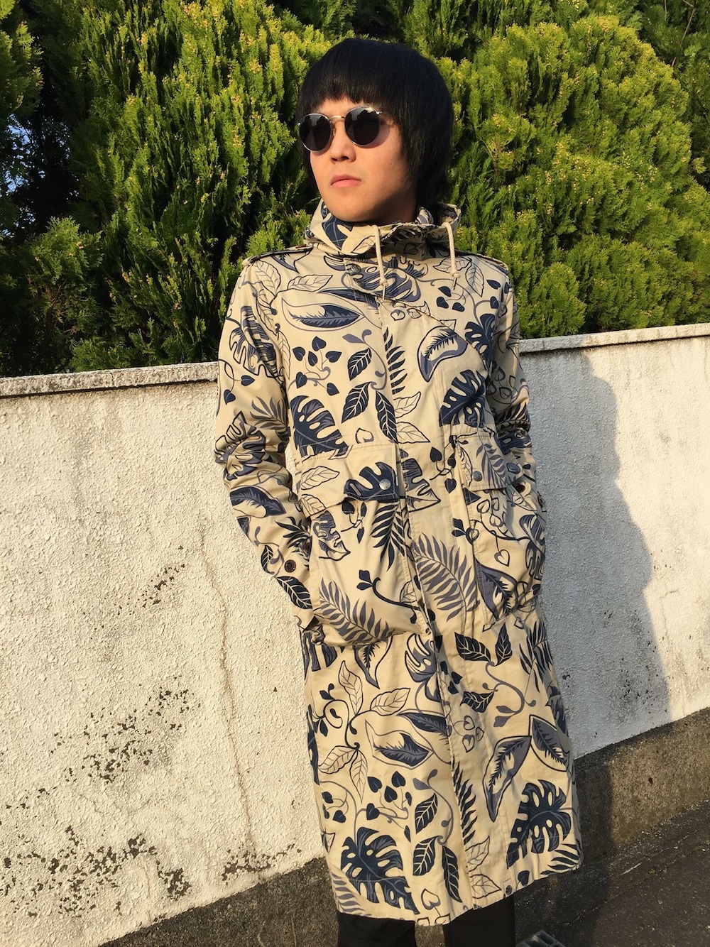 Hiroha Kenichiのダウンジャケット/コート「プリティーグリーンフラップポケットリーフカモ プリントモッズパーカー(ブルー)」を使ったコーディネート