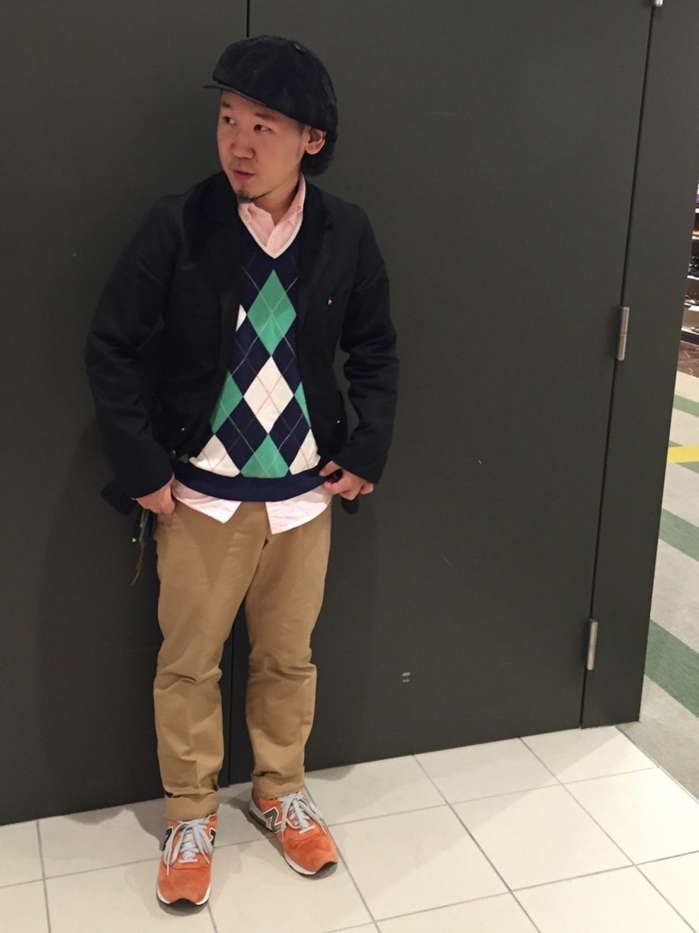 休日のアメリカ父さんイメージ。 ニットベストは動きやすいし好きです。 むしろベストが好きです。 94 news boy加工specialは最強に調子良いです。 newsboyは、アレンジしてもかぶれて自分流出せるのでおすすめでやんす。 やっぱりnewbalanceはやさすいですね。