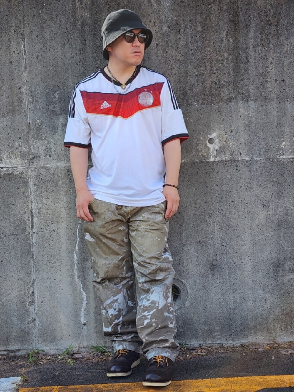 20年前くらいに買った、変わり種のカモフラ 色落ちしまくってる それにドイツ代表(古着)サッカーシャツ合わせてみた