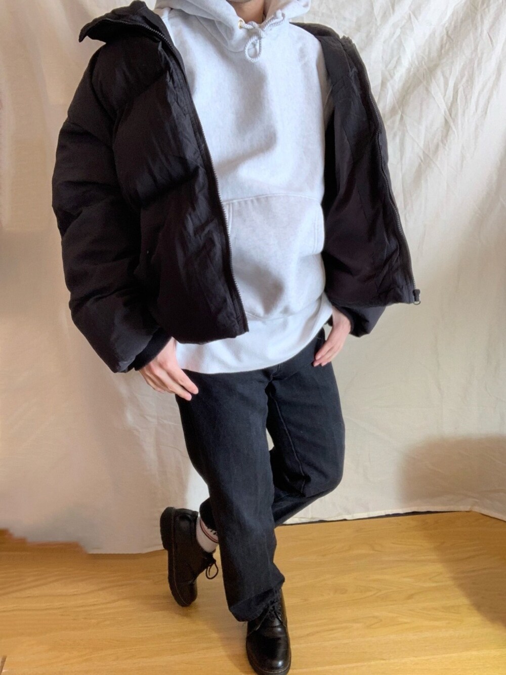 本日も ご覧いただきありがとうございます😊 今回は、全身プチプラブランドコーデで組みました。よかったいいね、保存、フォローお願いします!🙇♂️ TOPS:GU Lサイズ down jacket: ASCLO FREEサイズ PANTS: GU Mサイズ shoes: WEGO Mサイズ
