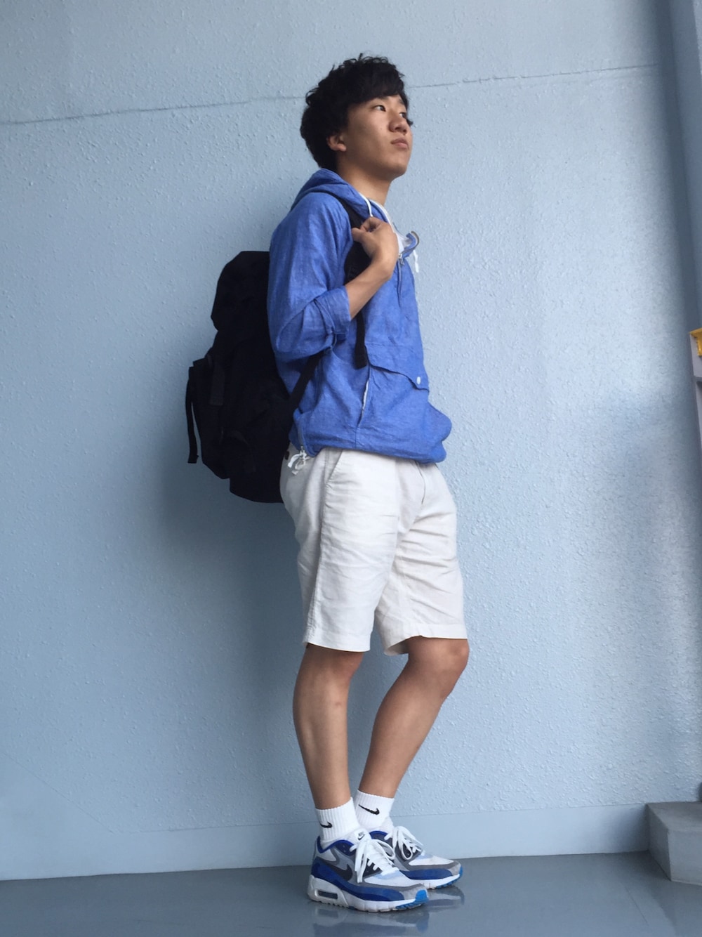 こんばんわ! 日中の暑い日が続きますね。 夜はまだショーツでは肌寒いですね(笑) 本日はスポーツミックススタイルです🎶 僕の大好きなアノラックパーカーにショーツとスニーカーで合わせました まだ夜は寒いかなーって思ってナイキのロングソックスを履いてみました(*^^*) エアーマックスは相変わらずフィット感が最高。 ポイントはナイキのソックスにエアーマックスを合わせてるあたりです(笑) バックパックはAVIREXで買ったものでお気に入りです 値段のわりには形だったりしっかりしていて、十分な収納があります🎶 余談ですが、 最近ランニングにハマっていて、ちょうどこの時期の夜は走ってて気持ちがいい(笑) 頭の中もサッパリする感じでオススメです(笑)