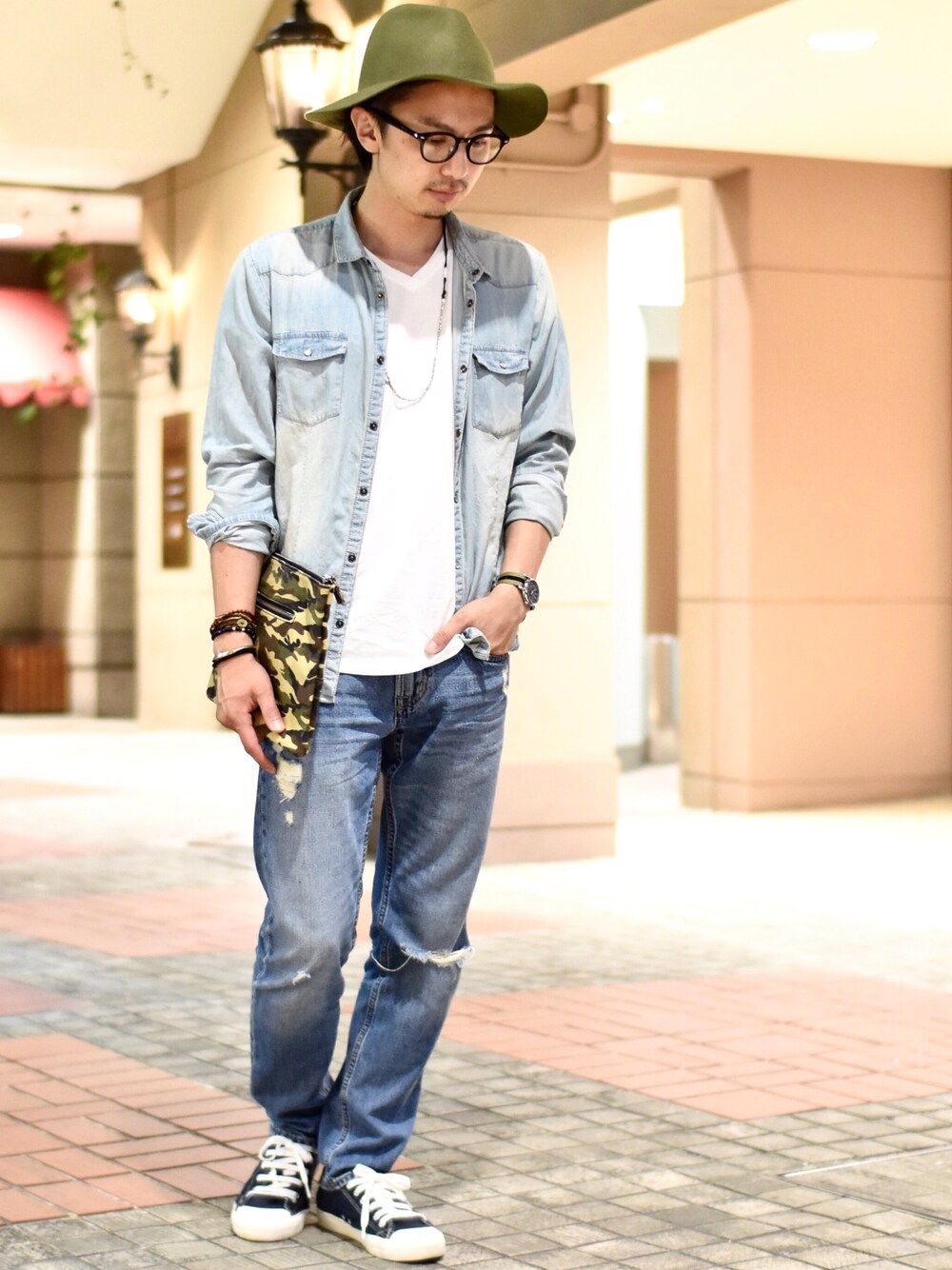 デニム オン デニムで合わせた、男臭いコーディネートです。 アクセントでカーキのハットを合わせてみました。 数年前はヒゲ、ロン毛、パーマで、こういうテイストばっかりでした…笑