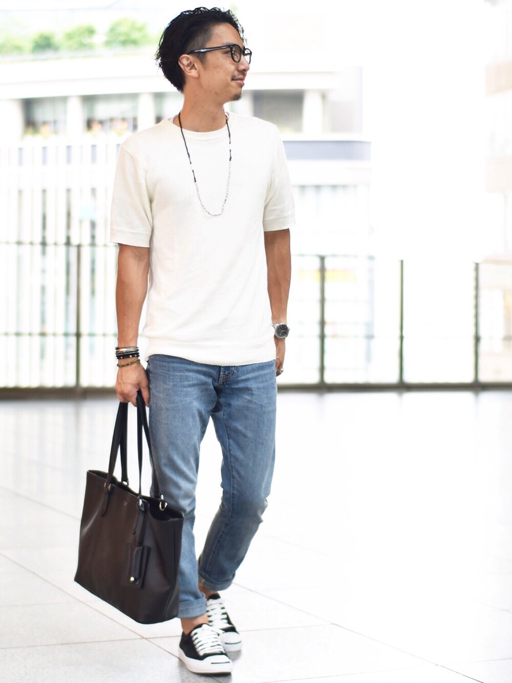 ご覧いただきありがとうございます! 本日のコーデは、オフホワイトのサマーニットとUSEDデニムで合わせたシンプルなスタイルです。 意外とはじめて購入した、コンバースのジャックパーセル! ハイテクスニーカーも好きだけど、やっぱりベーシックなスニーカーも合わせやすくてイイ! 今の気分にピッタリです♪