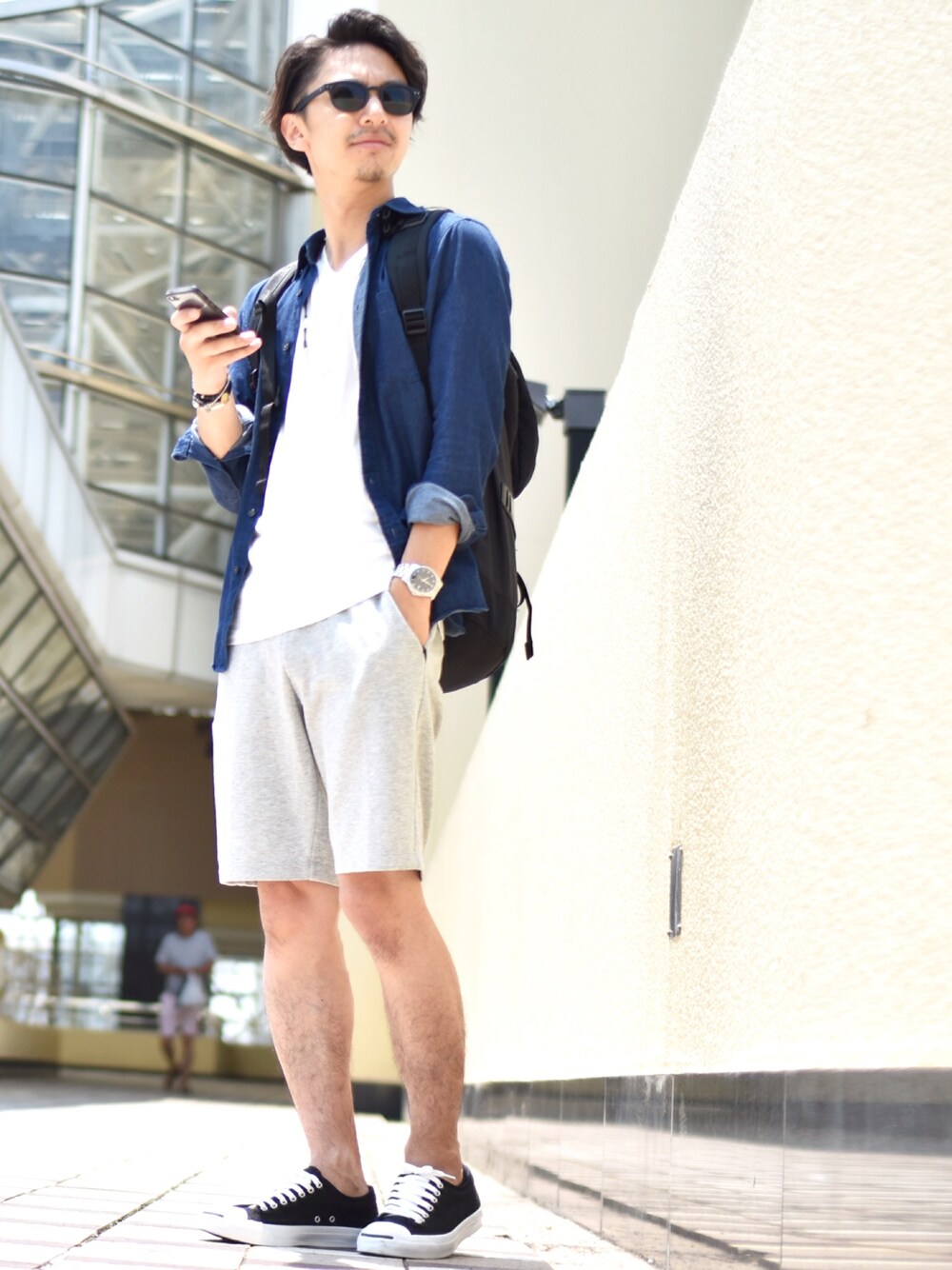ご覧いただきありがとうございます! 本日のコーデは、デニムシャツとスウェットショーツを合わせたシンプルスタイルです。 ちなみに前回より爽やかさを意識してみました!笑 今回もウェア類は全部UNIQLOでまとめたプチプラコーデになってます。