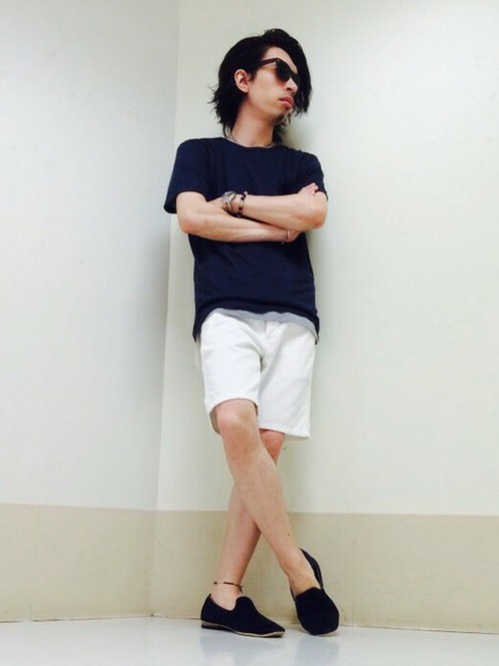 ネイビー×ホワイトの爽やかシンプル夏コーデ♪ 麻100%の軽やかなTシャツにグレーのTシャツをレイヤードしました。 T1じゃ物足りない35℃越えの夏のコーデにぴったりです♪