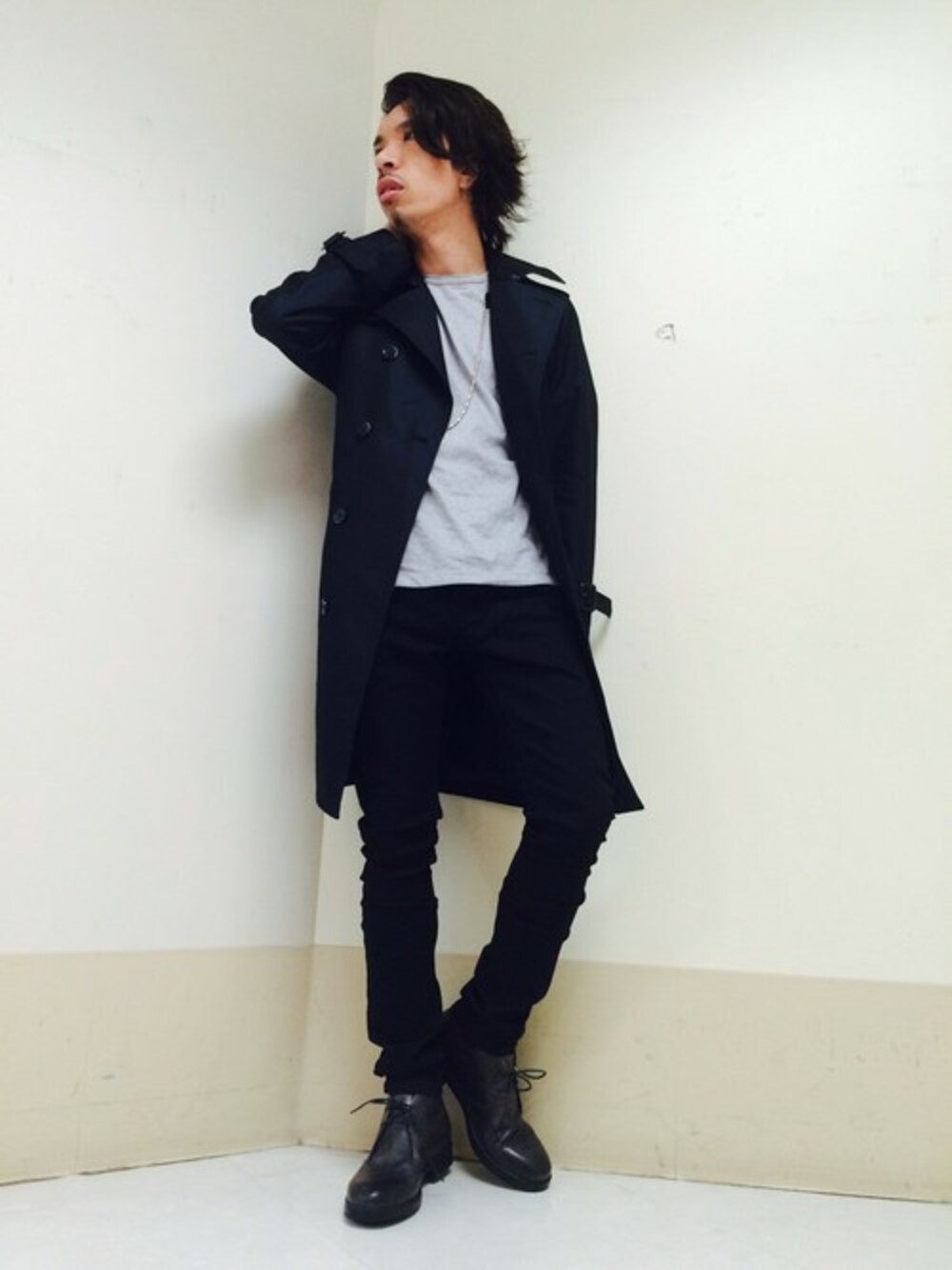 正統派トレンチをシンプルにカットソーをあわせてカジュアルダウン♪ ロングアウターにスキニー×ブーツで、すっきりとした縦のラインをつくり、スタイルアップ効果も♪