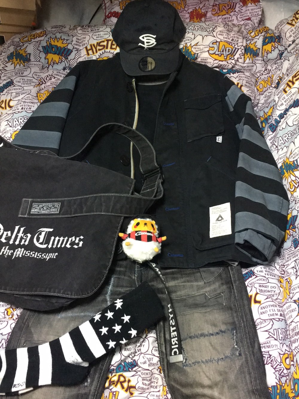 おはようございます♪ NEIGHBORHOODのデッキジャケットを使ってのブラックのNEIGHBORHOODオールスターズコーデです〜♪ ちなみに紹介遅れました。よくハッシュドポテトもとい#タグに載せている「ジンくんも居るでよ」っていうのは中央に写っているジンギスカンのジンくんという北海道ご当地キャラでめっちゃ可愛くてお気に入りなのです〜♪ 今後ともよろしくお願いします〜♪