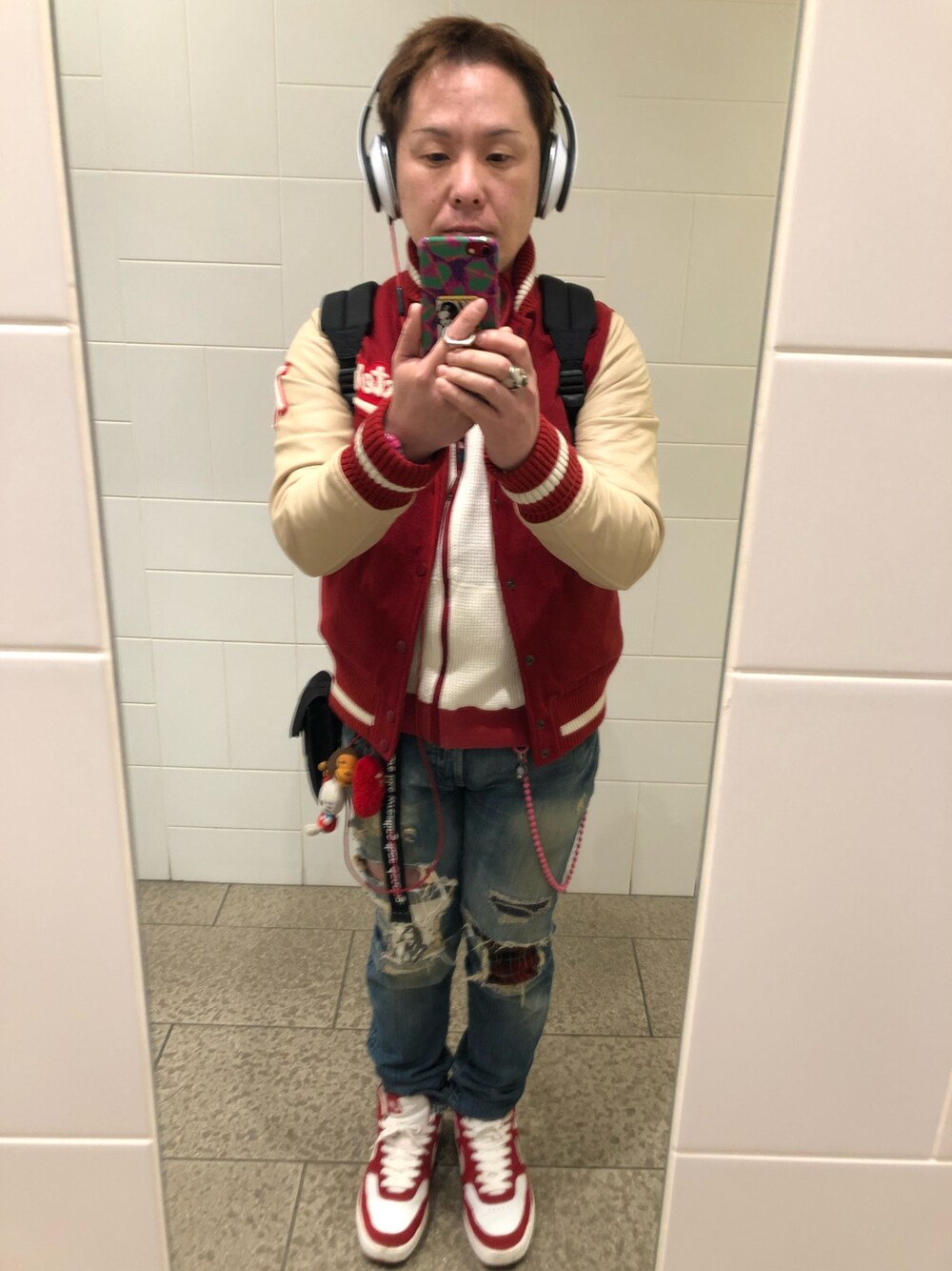 名和 賢悟のスタジャン「ワッペン付レザースタジャン」を使ったコーディネート