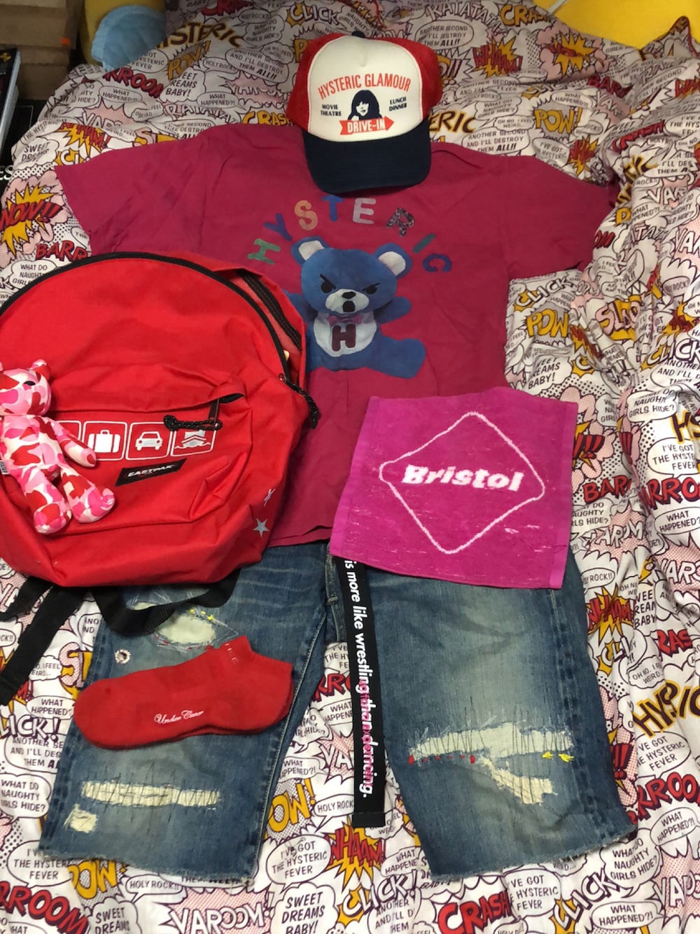 名和 賢悟のTシャツ/カットソー「HYS BEAR プリント Tシャツ」を使ったコーディネート