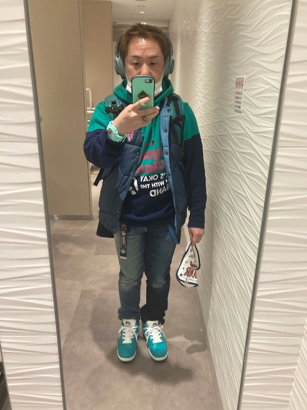 名和 賢悟のダウンベストを使ったコーディネート