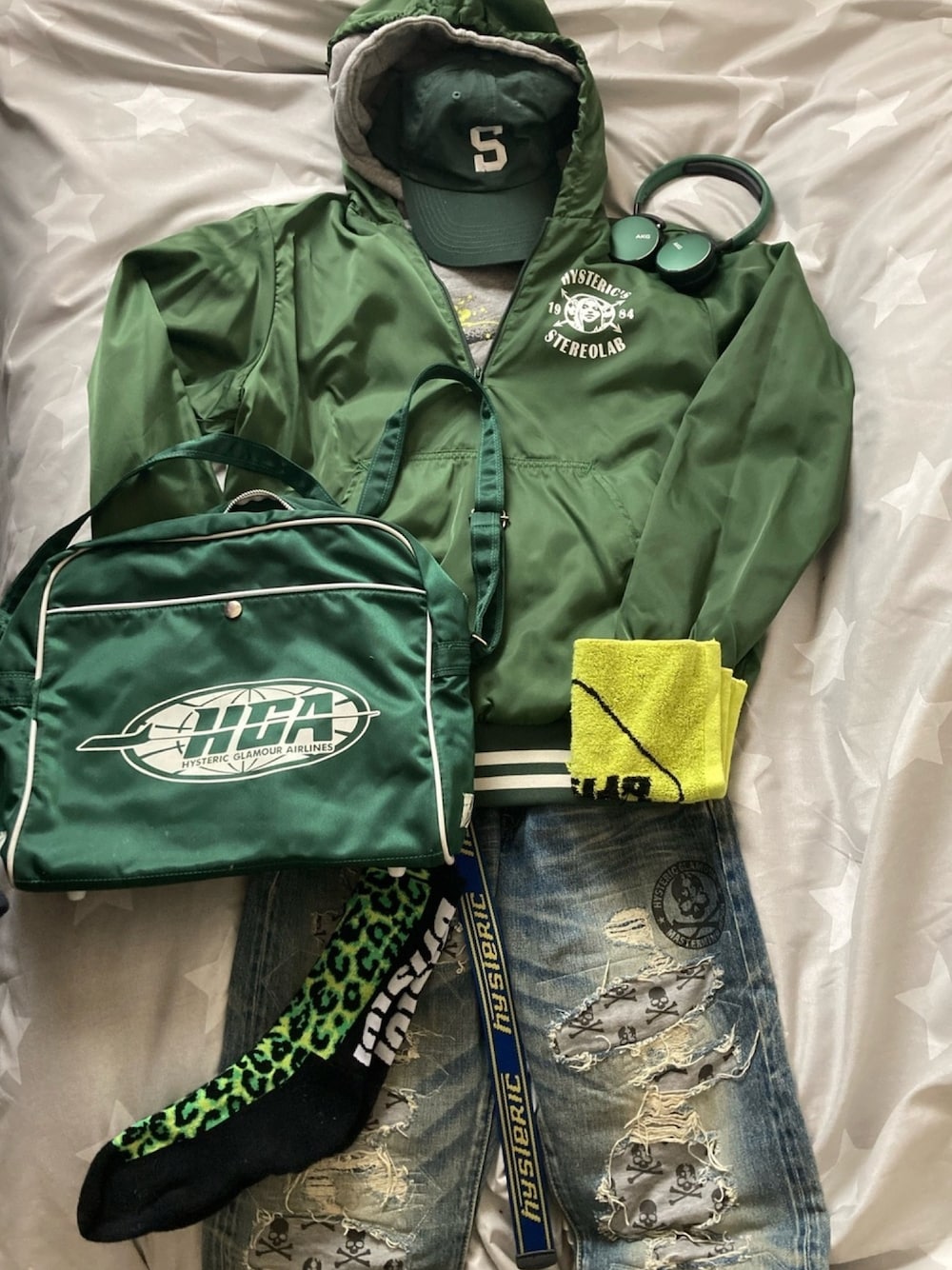 名和 賢悟のスタジャン「STEREOLAB pt フーデッドプルオーバーJK」を使ったコーディネート