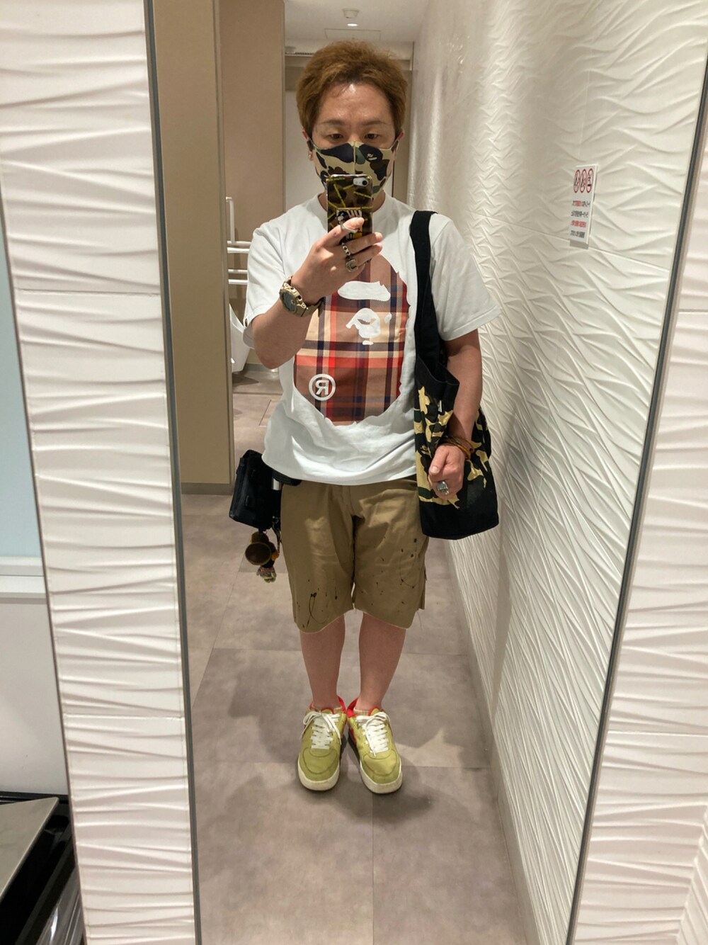 名和 賢悟のTシャツ/カットソー「BAPE CHECK BIG APE HEAD TEE M」を使ったコーディネート