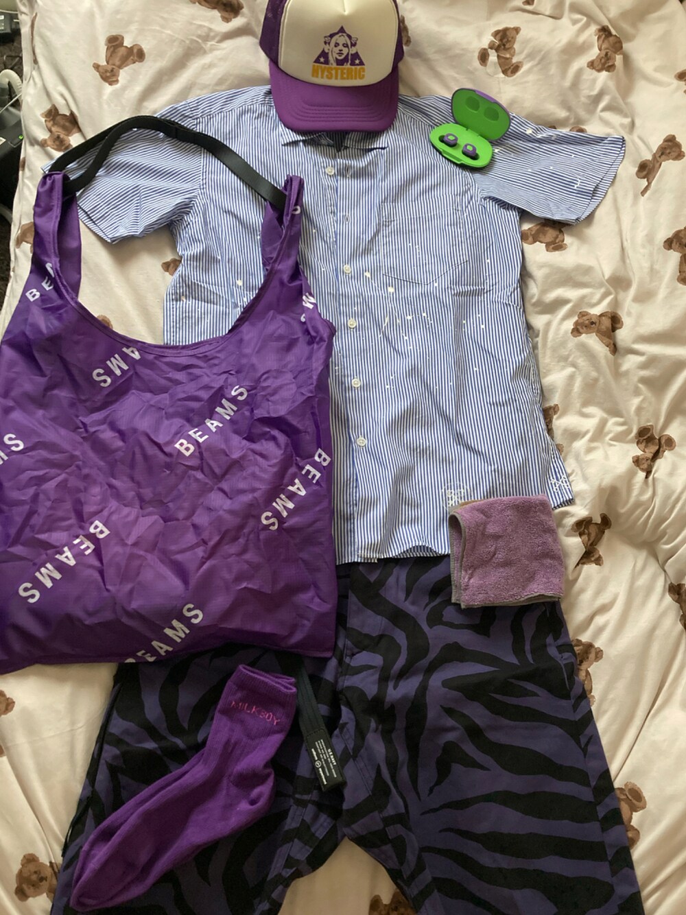 おはようございます〜♪ ご覧頂きありがとうございます〜♪ こういった季節になると「♪季節の変わり目を〜あなたの心で知るなんて〜♪」と高田みづえや三ツ木清隆らが歌った「秋冬」を歌い出す僕は昭和歌謡好きのおっさん〜♪でお馴染みの名和賢悟です〜♪ このシャツの宣材写真の白人モデルがカッコよくこのパープルのパンツと合わせてるのを真似っ子してみましたが、所詮東洋人のおっさんでは似合わないのです…