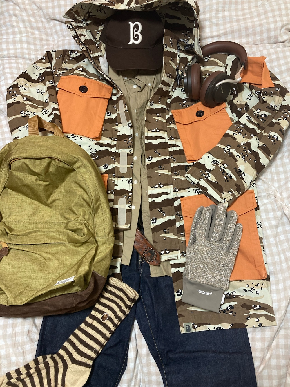 名和 賢悟のミリタリージャケット「DESERT CAMO LOOSE FIT MILITARY JACKET M」を使ったコーディネート